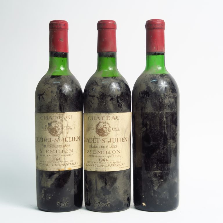 3 BOUTEILLES CHÂTEAU GUADET ST JULIEN GCC ST EMILION - 1964 - HEP/1 SE/1 PRESUMEE