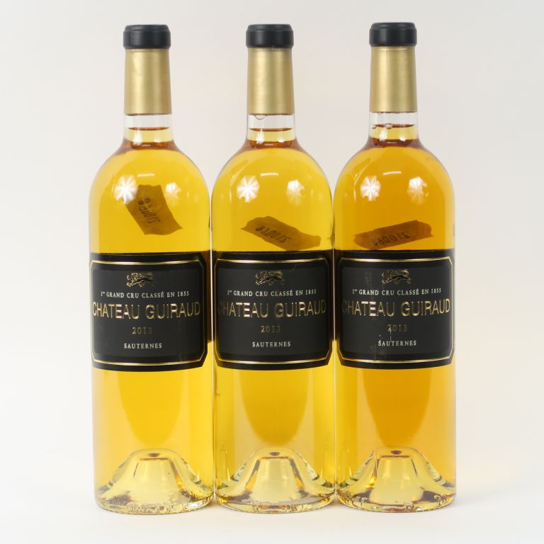 Lot de 3 BOUTEILLES CHÂTEAU GUIRAUD 1er CC SAUTERNES - 2013 au prix de 75 à 90 € en vente aux enchères par l'hôtel des ventes Primardeco