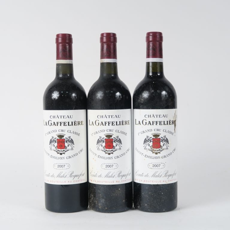 Lot de 3 BOUTEILLES CHÂTEAU LA GAFFELIÈRE 1er GCC ST EMILION - 2007 au prix de 80 à 90 € en vente aux enchères par l'hôtel des ventes Primardeco