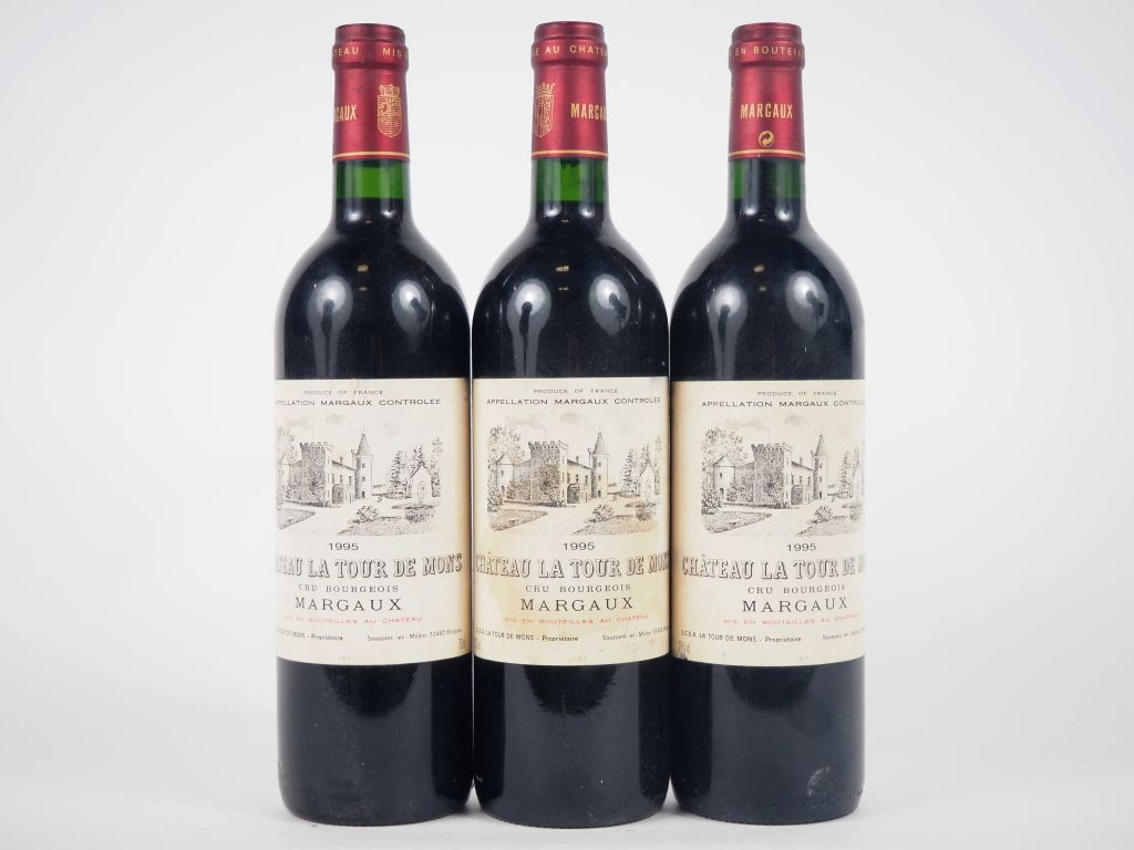 Lot de 3 BOUTEILLES CHÂTEAU LA TOUR DE MONS CB MARGAUX - 1995 - 1 ET au prix de 30 à 50 € en vente aux enchères par l'hôtel des ventes Primardeco