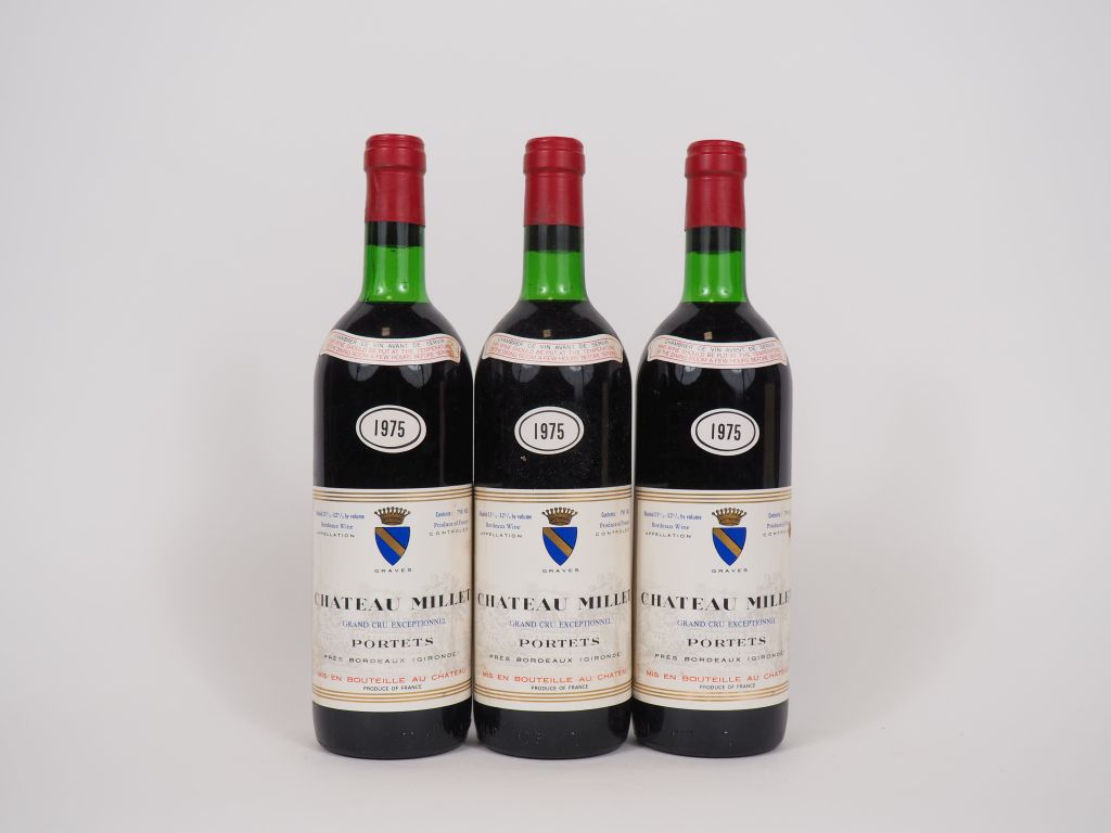 Lot de 3 BOUTEILLES CHÂTEAU MILLET GC PORTETS - 1975 - BG au prix de 35 à 45 € en vente aux enchères par l'hôtel des ventes Primardeco