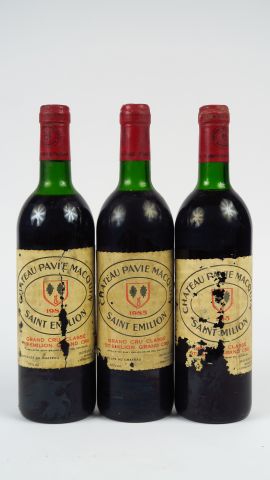 Lot de 3 BOUTEILLES CHÂTEAU PAVIE MACQUIN GCC ST EMILION - 1985 - 2 LB/1 HEP/ au prix de 60 à 70 € en vente aux enchères par l'hôtel des ventes Primardeco