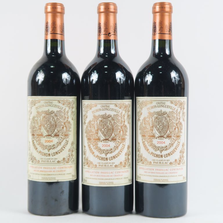 Lot de 3 BOUTEILLES CHÂTEAU PICHON LONGUEVILLE BARON GCC PAUILLAC - 2004 au prix de 150 à 180 € en vente aux enchères par l'hôtel des ventes Primardeco