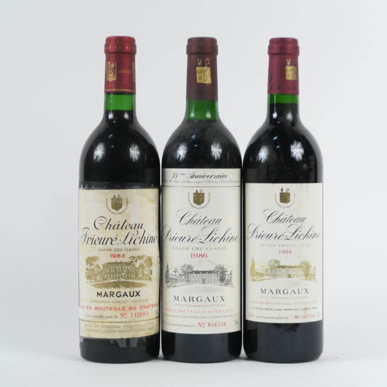 3 BOUTEILLES CHÂTEAU PRIEURE LICHINE GCC MARGAUX - 1 de 1983 ET SCOTCHÉE/1 de 1986 BG/1 de 1994
