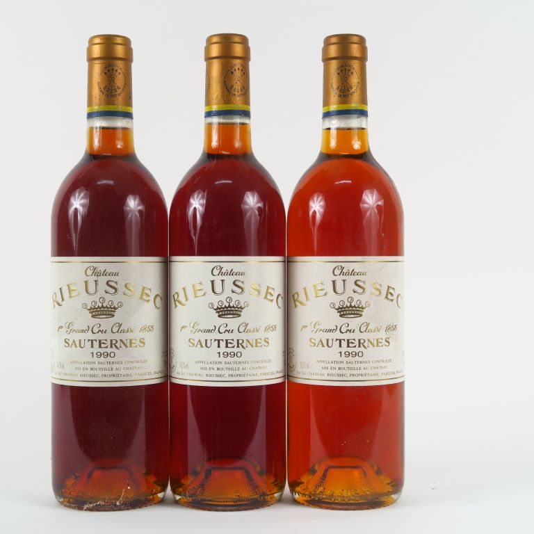 Lot de 3 BOUTEILLES CHÂTEAU RIEUSSEC 1er CC SAUTERNES - 1990 au prix de 100 à 120 € en vente aux enchères par l'hôtel des ventes Primardeco