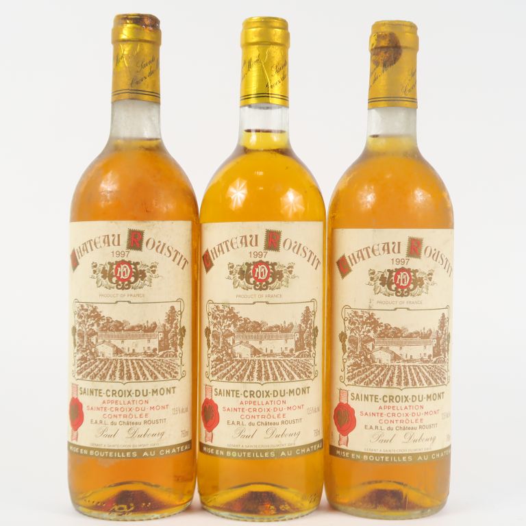 Lot de 3 BOUTEILLES CHÂTEAU ROUSTIT STE CROIX DU MONT - 1997 au prix de 30 à 40 € en vente aux enchères par l'hôtel des ventes Primardeco