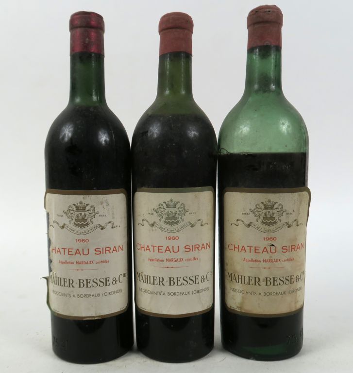 Lot de 3 BOUTEILLES CHÂTEAU SIRAN MÄHLER BESSE CIE - 1960 - 1 LB/1 MEP/1 VI au prix de 40 à 50 € en vente aux enchères par l'hôtel des ventes Primardeco