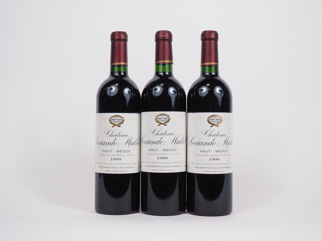 Lot de 3 BOUTEILLES CHÂTEAU SOCIANDO MALLET HAUT MÉDOC - 1999 au prix de 60 à 80 € en vente aux enchères par l'hôtel des ventes Primardeco