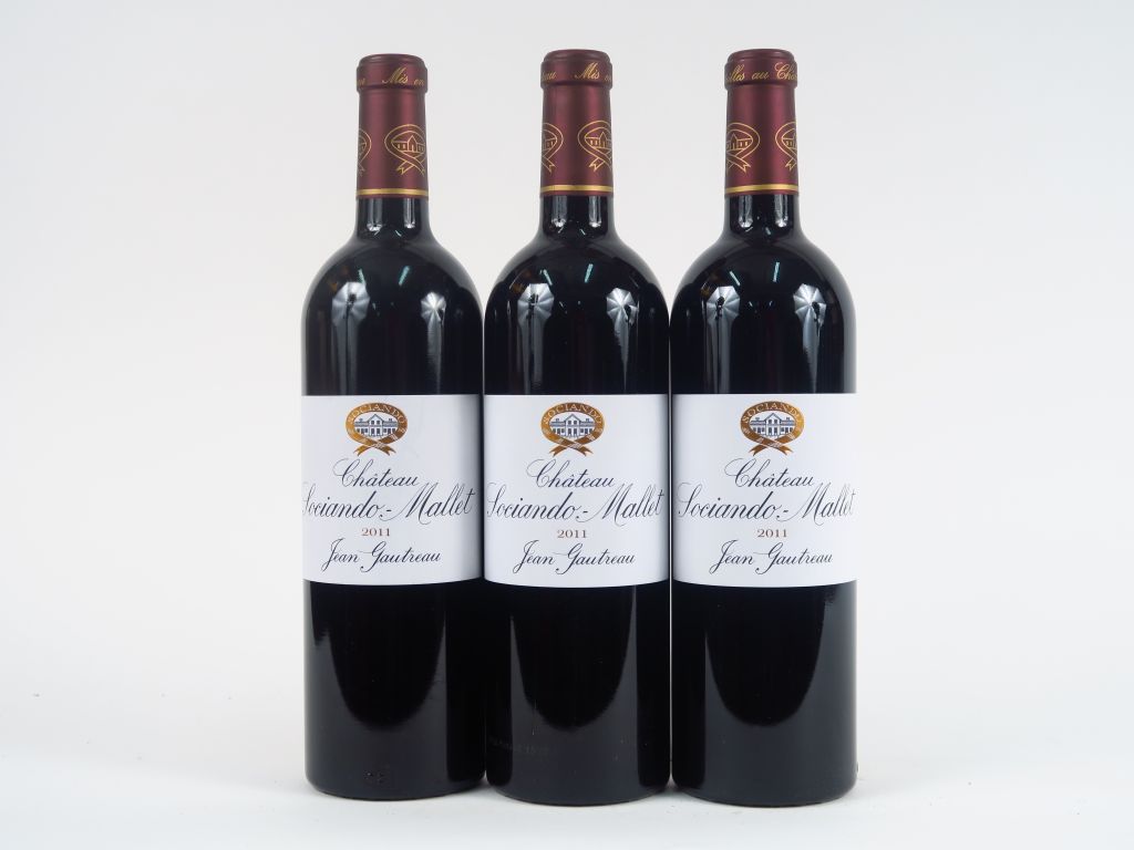 Lot de 3 BOUTEILLES CHÂTEAU SOCIANDO MALLET HAUT MEDOC - 2011 au prix de 40 à 60 € en vente aux enchères par l'hôtel des ventes Primardeco
