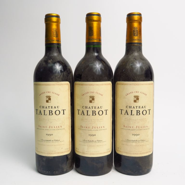 Lot de 3 BOUTEILLES CHÂTEAU TALBOT GCC ST JULIEN - 1990 au prix de 135 à 150 € en vente aux enchères par l'hôtel des ventes Primardeco