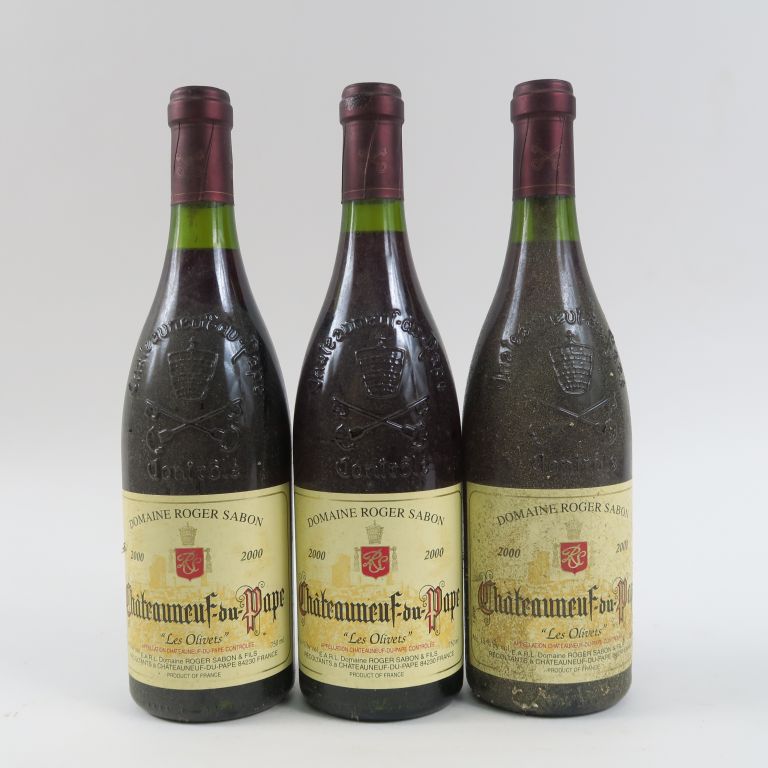 Lot de 3 BOUTEILLES CHÂTEAUNEUF DU PAPE 'LES OLIVETS' R. SABON - 2000 au prix de 60 à 80 € en vente aux enchères par l'hôtel des ventes Primardeco