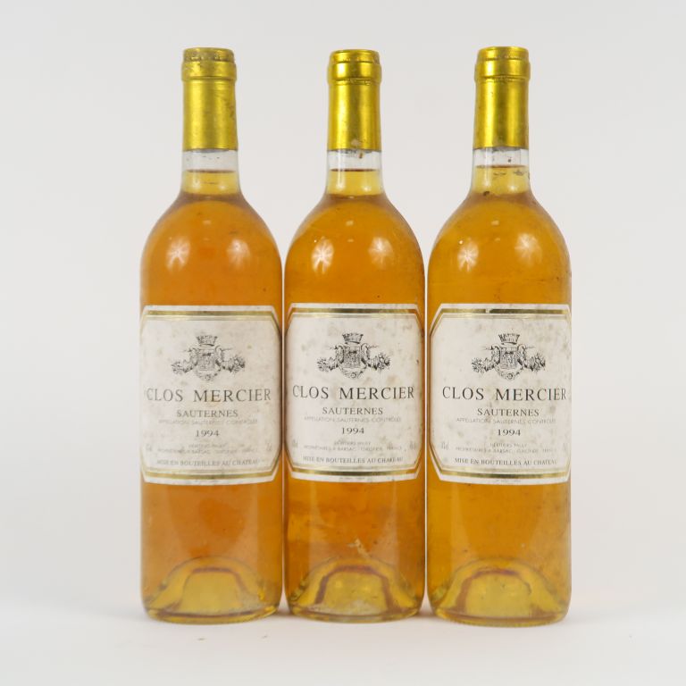 Lot de 3 BOUTEILLES CLOS MERCIER SAUTERNES - 1994 - BLS au prix de 20 à 30 € en vente aux enchères par l'hôtel des ventes Primardeco