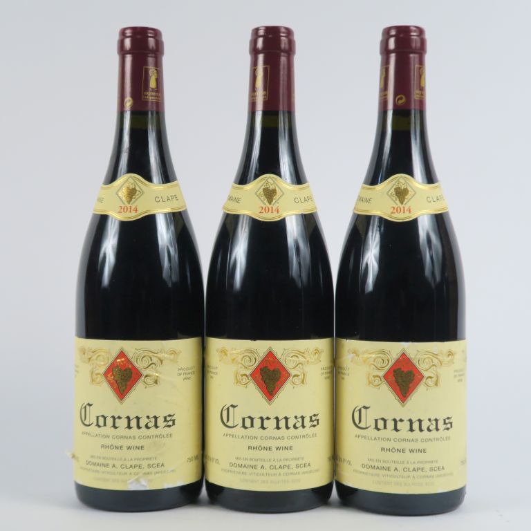 Lot de 3 BOUTEILLES CORNAS DOMAINE AUGUSTE CLAPE - 2014 - 1 ETLA au prix de 240 à 280 € en vente aux enchères par l'hôtel des ventes Primardeco