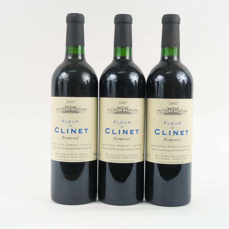Lot de 3 BOUTEILLES FLEUR DE CLINET POMEROL - 2007 au prix de 70 à 90 € en vente aux enchères par l'hôtel des ventes Primardeco