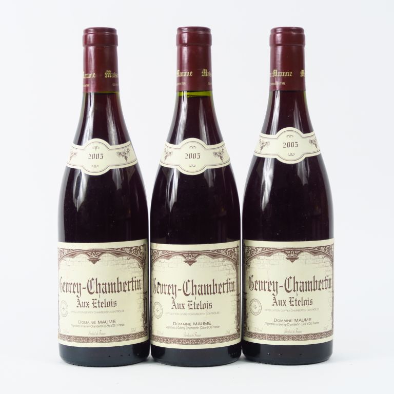 Lot de 3 BOUTEILLES GEVREY CHAMBERTIN 'AUX ETELOIS' DOMAINE MAUME - 2005 au prix de 70 à 90 € en vente aux enchères par l'hôtel des ventes Primardeco