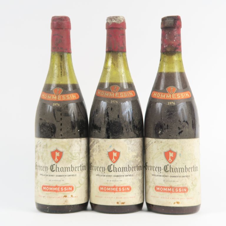 3 BOUTEILLES GEVREY CHAMBERTIN MOMMESSIN - 1976 - 3 CM/4,5 CM/5 CM/1 CAPS AB