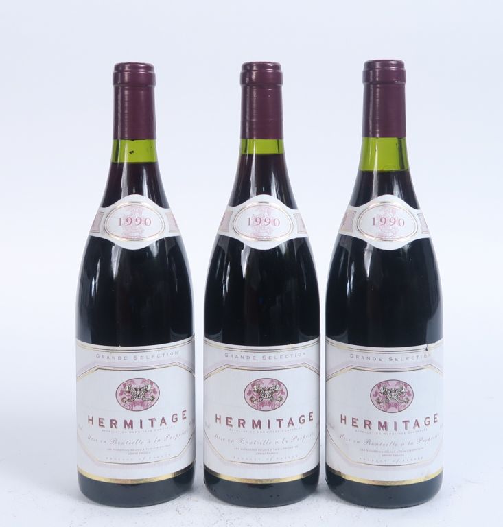 3 BOUTEILLES HERMITAGE - 1990 - 1 à 1,5 CM/1 à 2 CM/1 à 2,5 CM