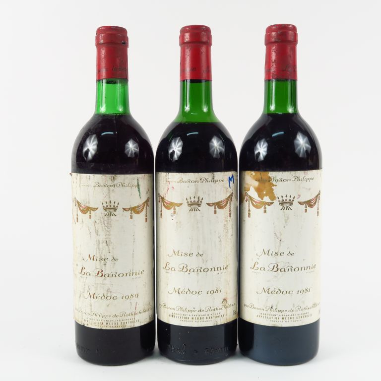 Lot de 3 BOUTEILLES MISE DE LA BARONNIE MEDOC - 1981 - 2 LB/1HEP au prix de 25 à 30 € en vente aux enchères par l'hôtel des ventes Primardeco