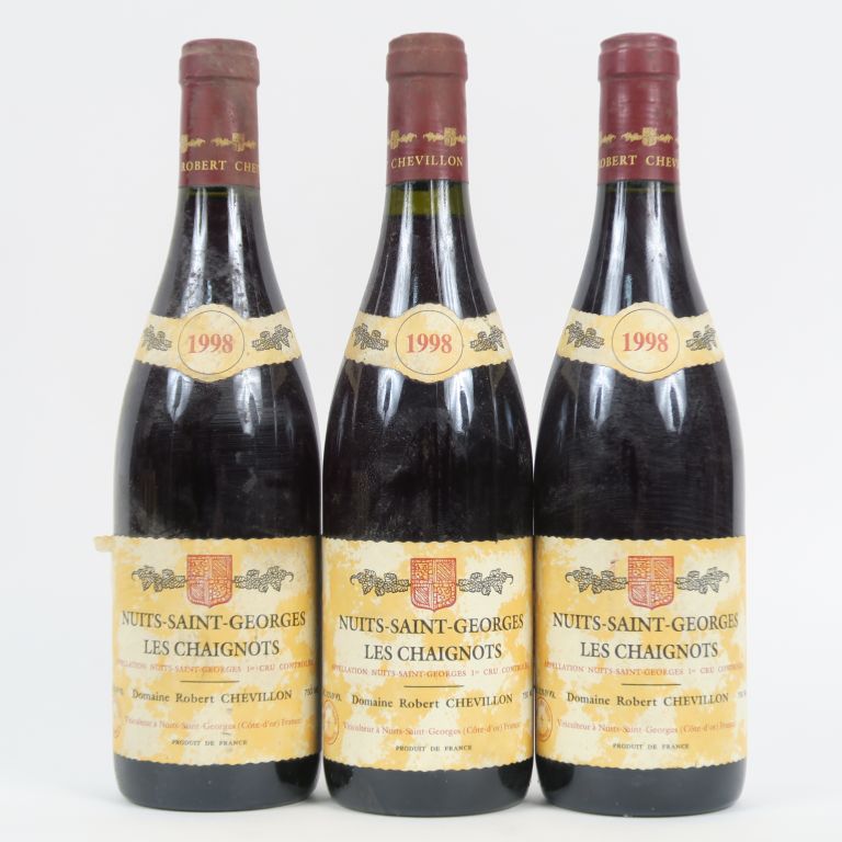 3 BOUTEILLES NUITS ST GEORGES 1er CRU 'LES CHAIGNOTS' DOMAINE ROBERT CHEVILLON - 1998
