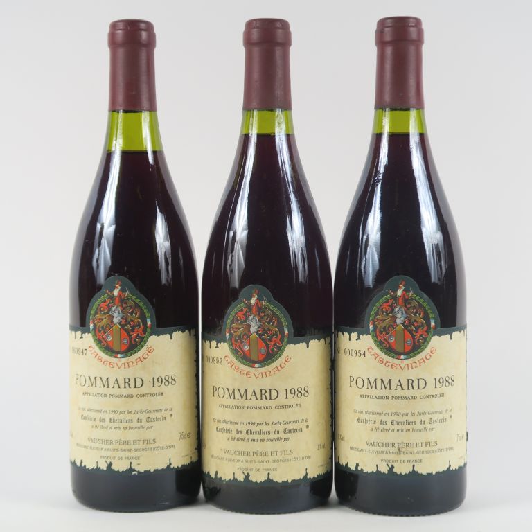 Lot de 3 BOUTEILLES POMMARD TASTEVINAGE VAUCHER PÈRE FILS - 1988 au prix de 50 à 60 € en vente aux enchères par l'hôtel des ventes Primardeco