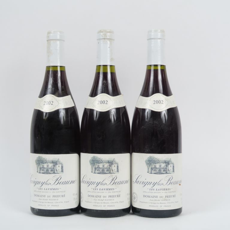 3 BOUTEILLES SAVIGNY LES BEAUNE 1er CRU 'LES LAVIERES' DOMAINE DU PRIEURÉ - 2002