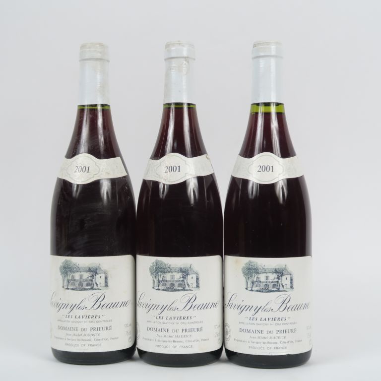 3 BOUTEILLES SAVIGNY LES BEAUNE 1er CRU 'LES LAVIERES' DOMAINE DU PRIEURÉ - 2001