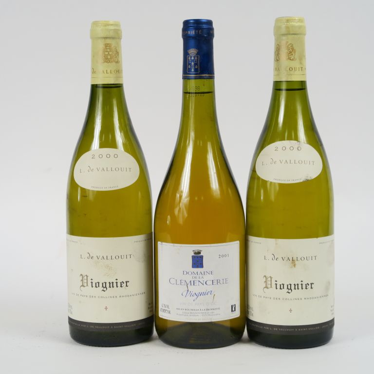 3 BOUTEILLES VIOGNIER : 2 L. DE VALLOUIT 2000 - 1 DOMAINE DE LA CLEMENCERIE 2001