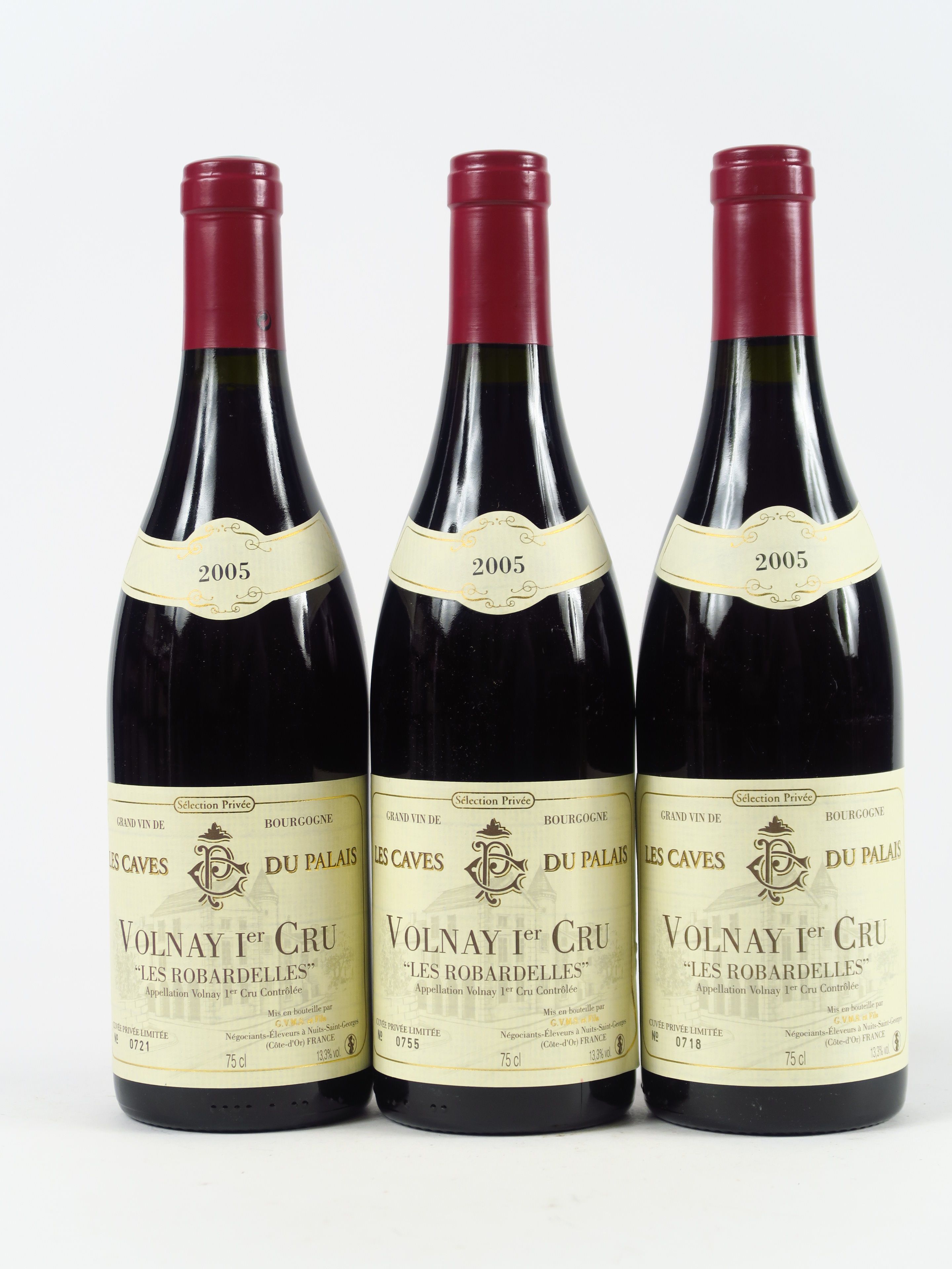 3 BOUTEILLES VOLNAY 1er CRU 'LES ROBARDELLES' CAVES DU PALAIS - 2005