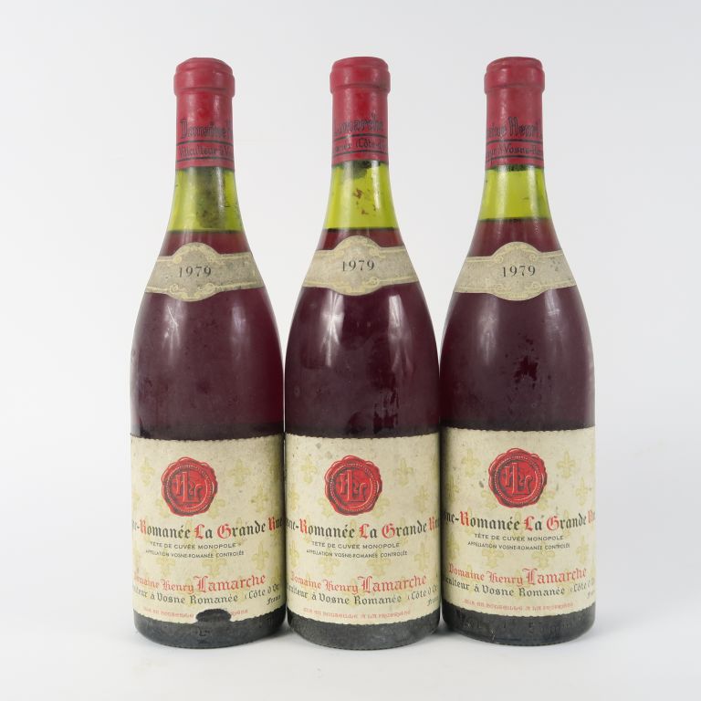 3 BOUTEILLES VOSNE ROMANÉE 'LA GRANDE RUE' DOMAINE HENRY LAMARCHE - 1979 - 1 à 3 CM/2 à 3,5 CM/1 ETLA