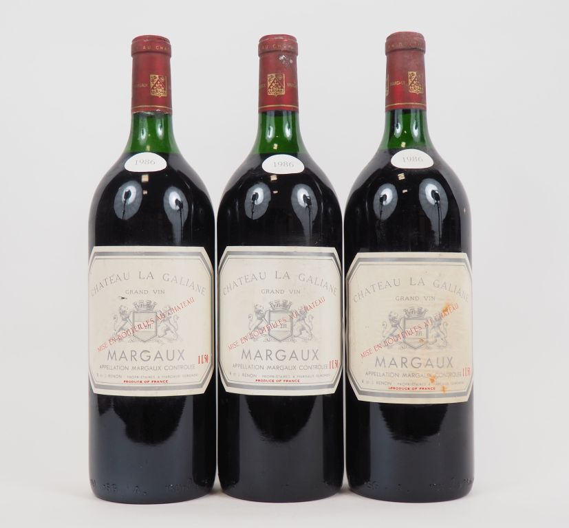 Lot de 3 MAGNUMS CHÂTEAU LA GALIANE MARGAUX - 1986 au prix de 30 à 40 € en vente aux enchères par l'hôtel des ventes Primardeco
