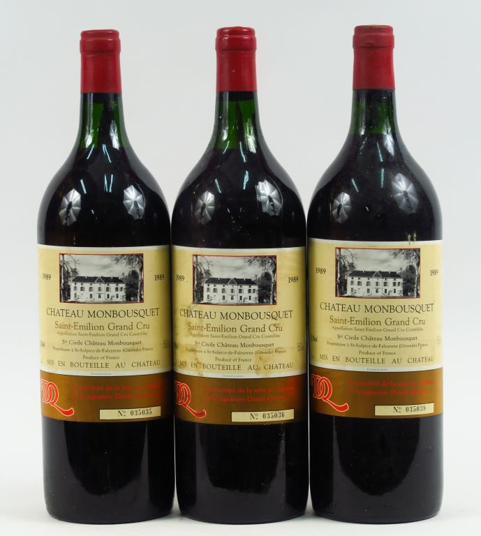 Lot de 3 MAGNUMS CHÂTEAU MONBOUSQUET GC ST EMILION - 1985 au prix de 120 à 140 € en vente aux enchères par l'hôtel des ventes Primardeco