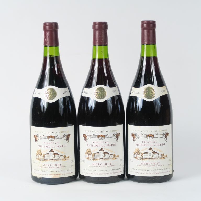 Lot de 3 MAGNUMS MERCUREY CHÂTEAU PHILIPPE LE HARDI - 1985 au prix de 180 à 190 € en vente aux enchères par l'hôtel des ventes Primardeco