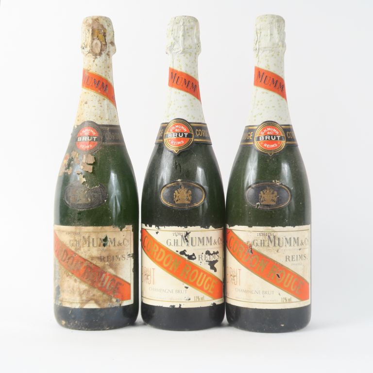 3 VIEILLES BOUTEILLES CHAMPAGNE MUMM 'CORDON ROUGE' - BS