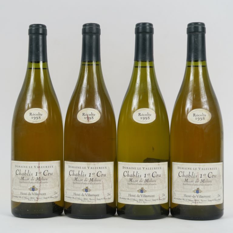 4 BOUTEILLES CHABLIS 1er CRU 'MONT DE MILIEU' HENRI DE VILLAMONT - 1998