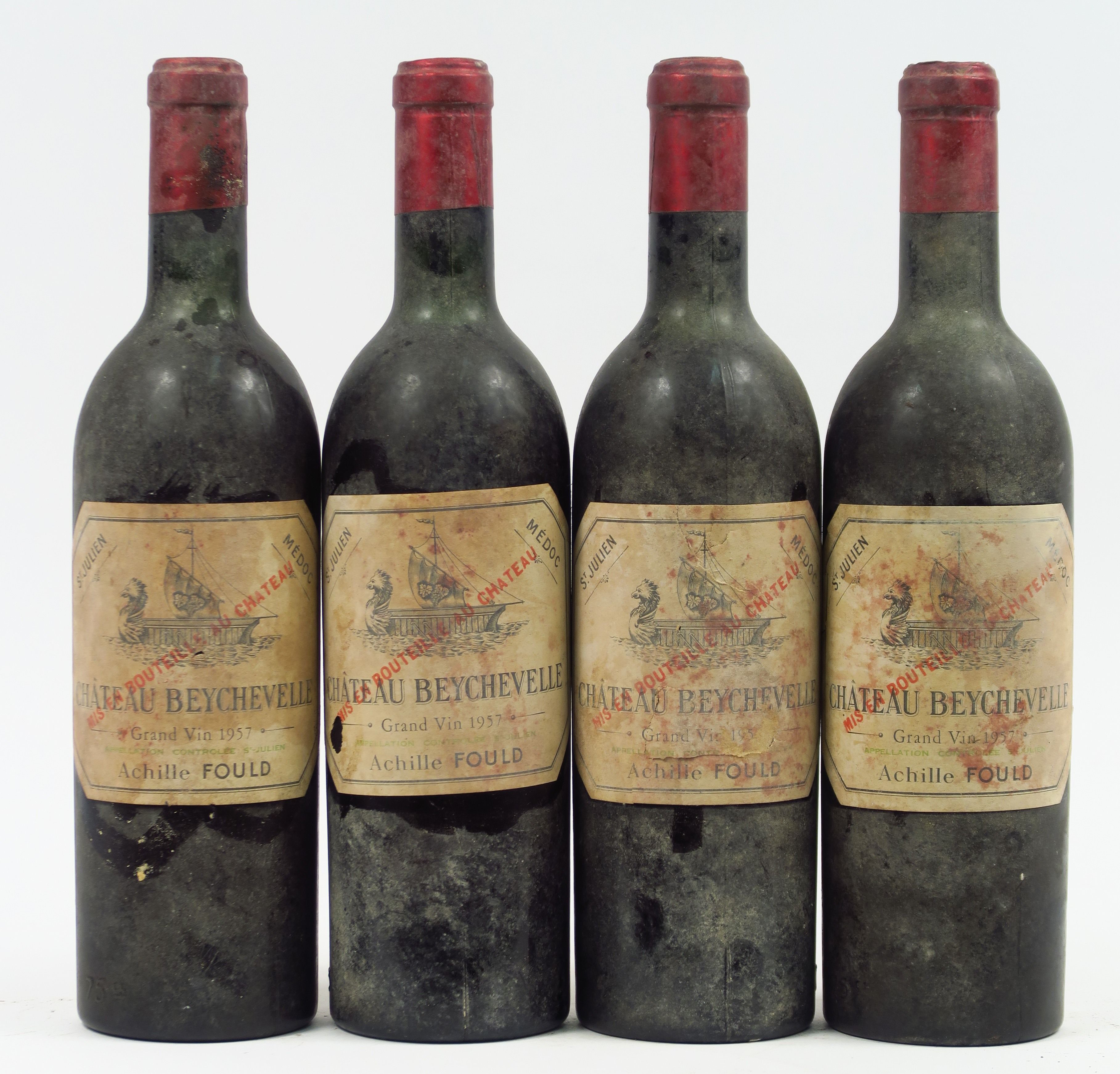 4 BOUTEILLES CHÂTEAU BEYCHEVELLE GCC ST JULIEN - 1957 - 2 BG/2 LB/EF/2...