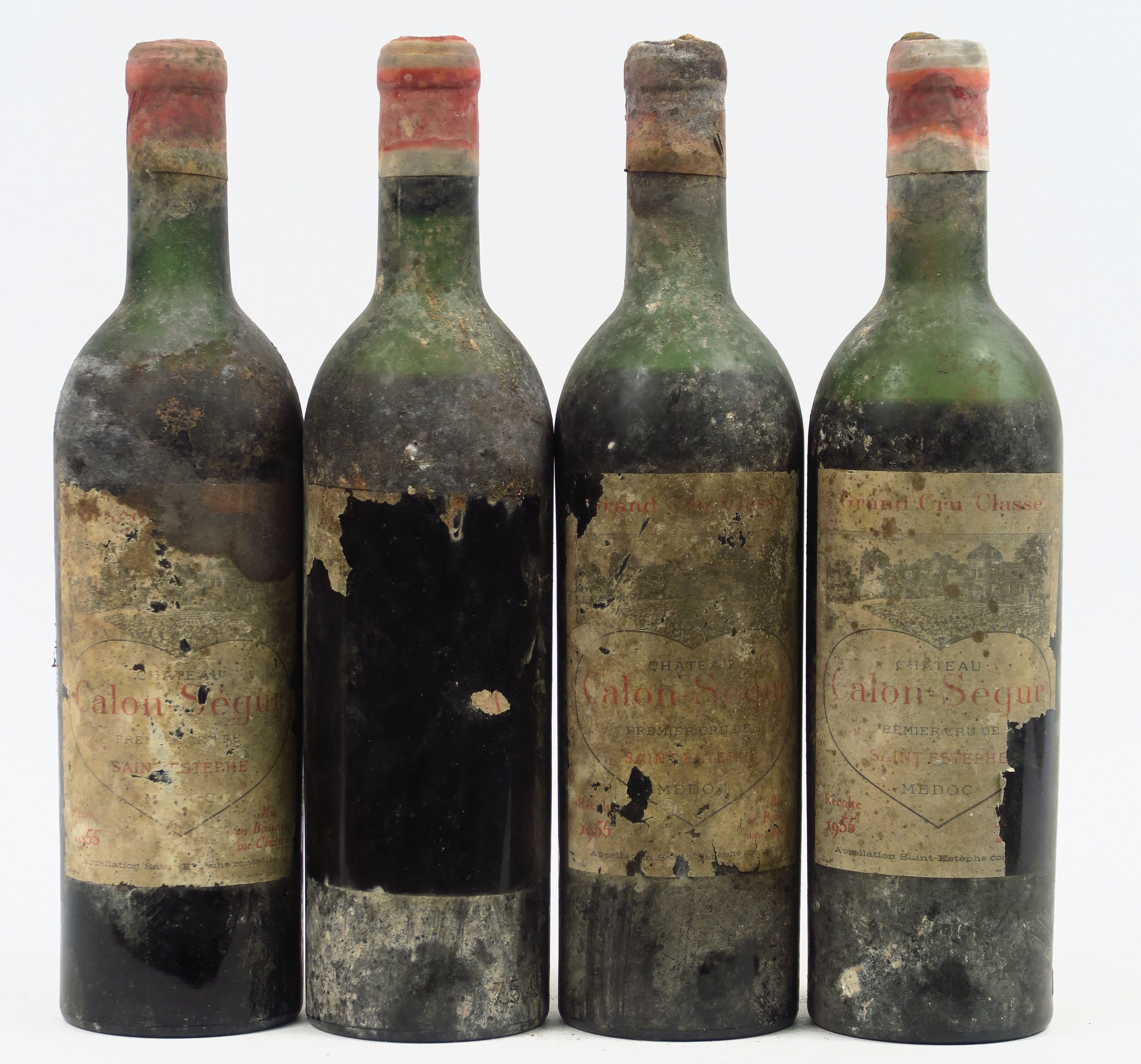4 BOUTEILLES CHÂTEAU CALON SEGUR GCC STE ESTEPHE - 1955 - BEP/ETA/CAPS CORRODEE/1 PRESUMEE/CAPS AB