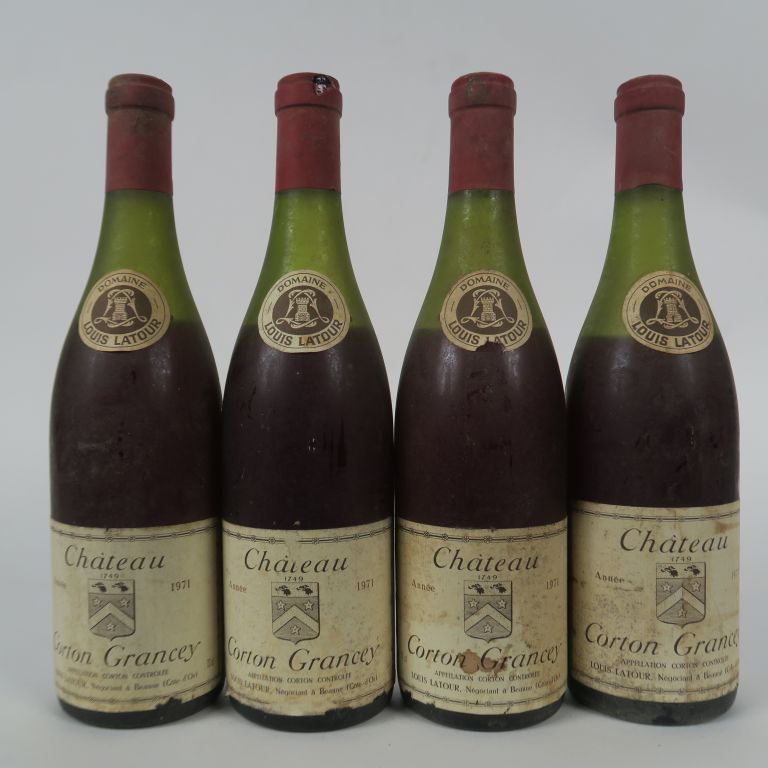 4 BOUTEILLES CHÂTEAU CORTON GRANCEY LOUIS LATOUR - 1971 - 6 CM/2 à 6,5 CM/7 CM/ET/ES/ETLA/CAPS AB
