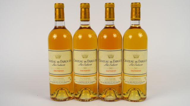 Lot de 4 BOUTEILLES CHÂTEAU DE FARGUES SAUTERNES - 2002 au prix de 200 à 220 € en vente aux enchères par l'hôtel des ventes Primardeco