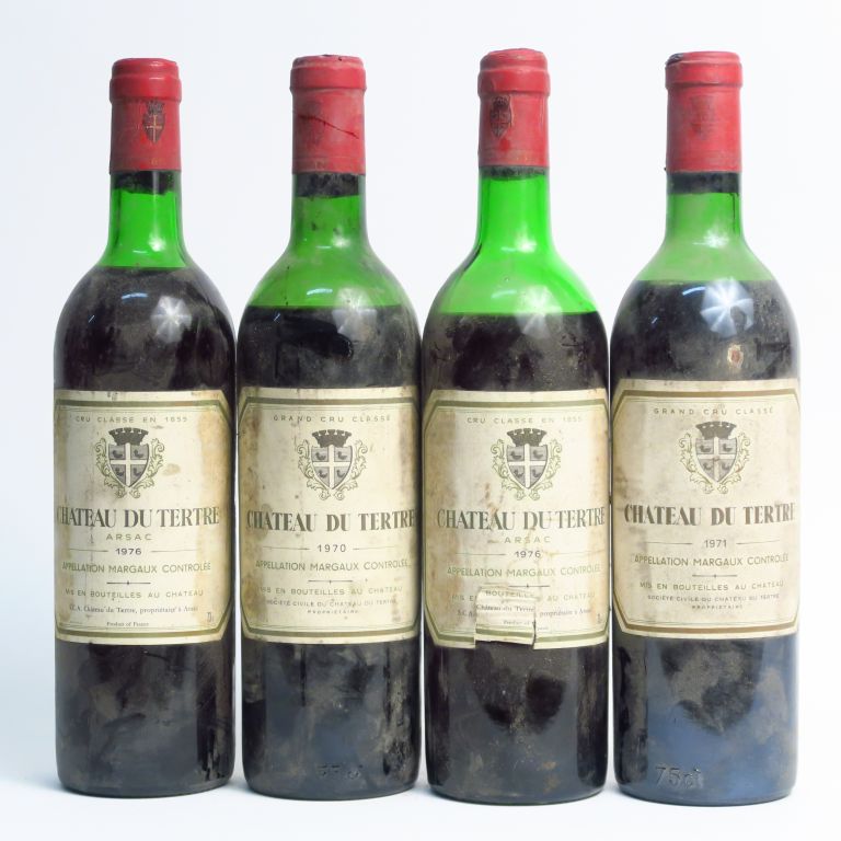 4 BOUTEILLES CHÂTEAU DU TERTRE MARGAUX : 1 de 1970 BEP - 1 de 1971 BEP - 2 de 1976 1 HEP/1 BEP