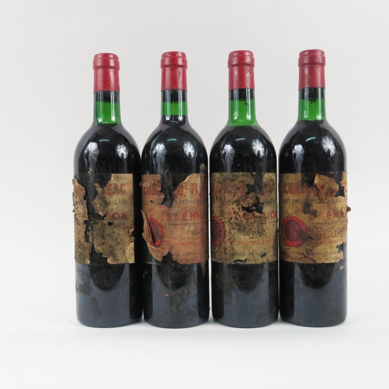 Lot de 4 BOUTEILLES CHÂTEAU FIGEAC 1er GCC ST EMILION - 1983 - 3 BG/1 HEP/ET au prix de 300 à 340 € en vente aux enchères par l'hôtel des ventes Primardeco