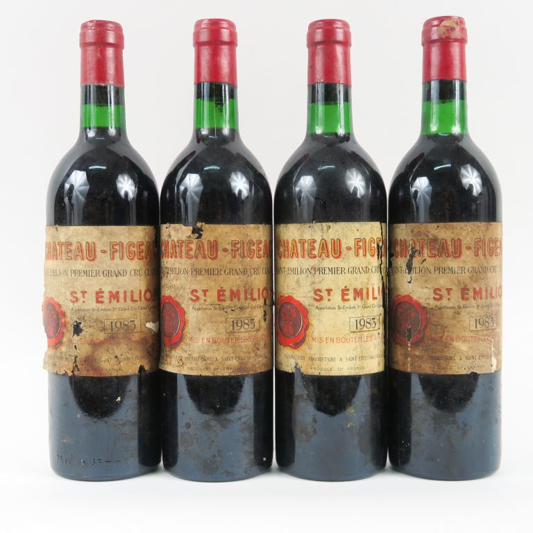 Lot de 4 BOUTEILLES CHÂTEAU FIGEAC 1er GCC ST EMILION - 1983 - BG/EA au prix de 340 à 380 € en vente aux enchères par l'hôtel des ventes Primardeco