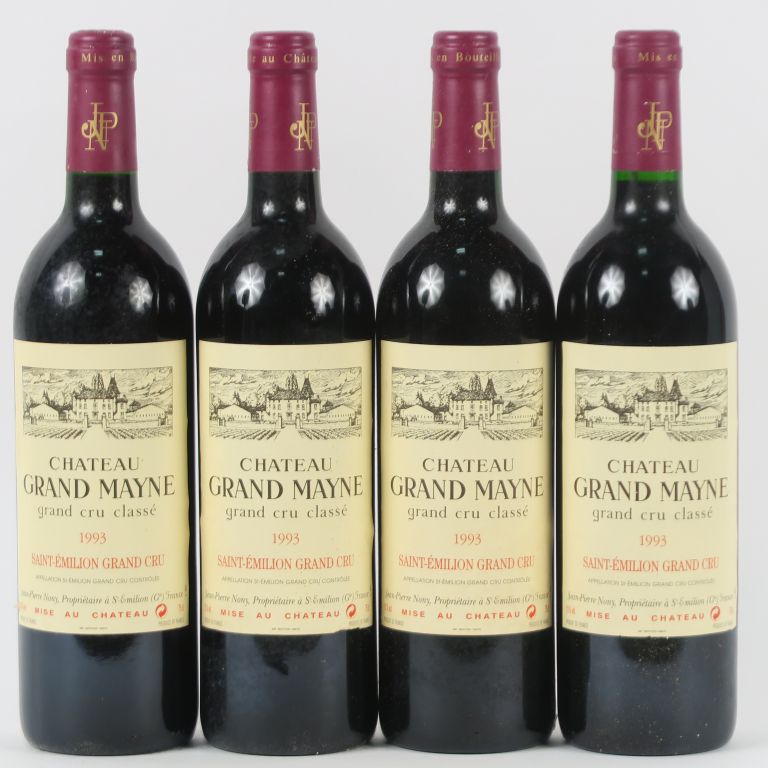 Lot de 4 BOUTEILLES CHÂTEAU GRAND MAYNE GC ST EMILION - 1993 au prix de 35 à 45 € en vente aux enchères par l'hôtel des ventes Primardeco