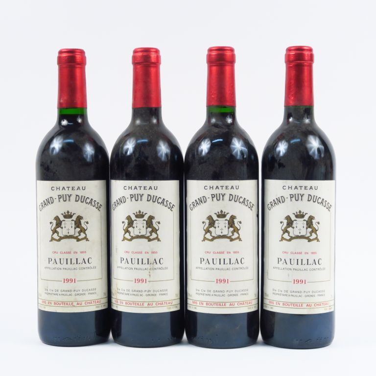 Lot de 4 BOUTEILLES CHÂTEAU GRAND PUY DUCASSE GCC PAUILLAC - 1991 au prix de 80 à 90 € en vente aux enchères par l'hôtel des ventes Primardeco