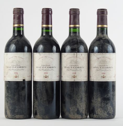 Lot de 4 BOUTEILLES CHÂTEAU HAUT CORBIN GCC ST EMILION - 1990 - BS au prix de 60 à 70 € en vente aux enchères par l'hôtel des ventes Primardeco