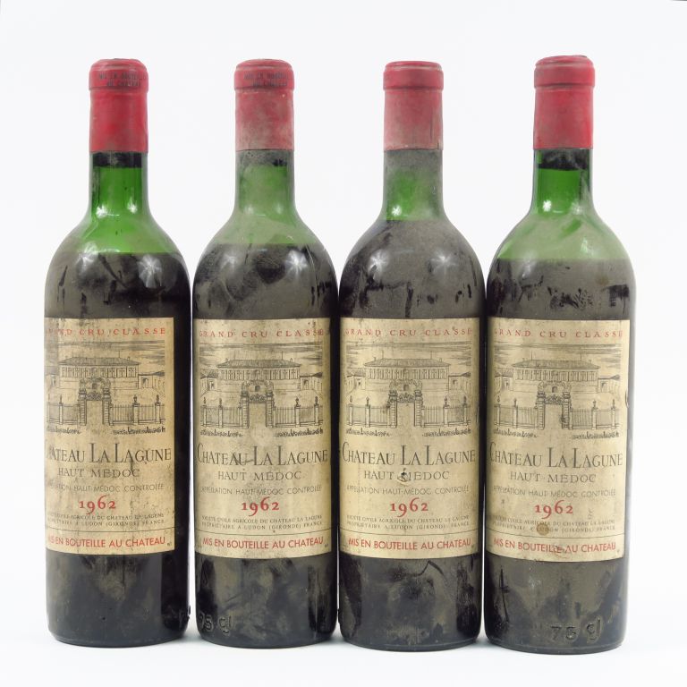 Lot de 4 BOUTEILLES CHÂTEAU LA LAGUNE GCC HAUT MEDOC - 1962 - 1 LB/3 BEP/BS au prix de 60 à 80 € en vente aux enchères par l'hôtel des ventes Primardeco