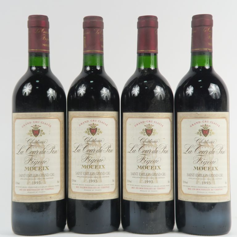 Lot de 4 BOUTEILLES CHÂTEAU LA TOUR DU PIN FIGEAC GC ST EMILION - 1993 au prix de 30 à 40 € en vente aux enchères par l'hôtel des ventes Primardeco