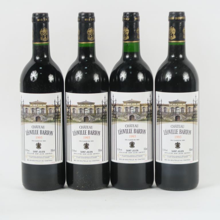 Lot de 4 BOUTEILLES CHÂTEAU LÉOVILLE BARTON GCC ST JULIEN - 1993 au prix de 100 à 120 € en vente aux enchères par l'hôtel des ventes Primardeco