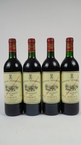 Lot de 4 BOUTEILLES CHÂTEAU MONBRISON CB MARGAUX : 3 de 1990 - 1 de 1989 au prix de 80 à 100 € en vente aux enchères par l'hôtel des ventes Primardeco