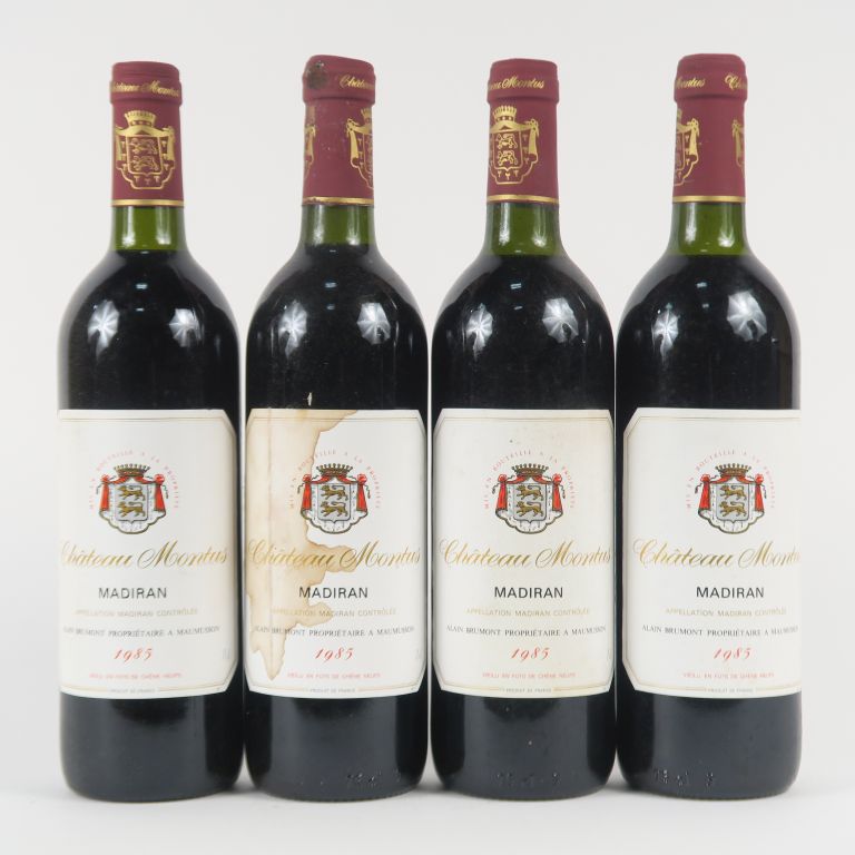 Lot de 4 BOUTEILLES CHÂTEAU MONTUS MADIRAN - 1985 - 2 BG/1 LB/1 ET au prix de 20 à 30 € en vente aux enchères par l'hôtel des ventes Primardeco