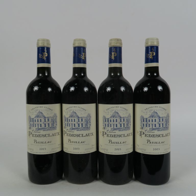 Lot de 4 BOUTEILLES CHÂTEAU PEDESCLAUX GCC PAUILLAC - 2003 au prix de 80 à 90 € en vente aux enchères par l'hôtel des ventes Primardeco